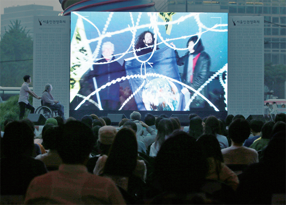 서울아트시네마 등에서 열리던 서울인권영화제가 거리로 나온 지 여섯 해를 맞았다. 인권영화제는 2008년 표현의 자유를 억압하는 ‘영화 및 비디오물에 관한 법률’에 반대해 서울 마로니에공원으로 나섰다. 영화제에서 영화를 상영하려면 영화진흥위원회의 추천을 받아야 하는데, 이 제도가 사전검열이라고 생각한 것이다. 거리 상영 장소를 청계광장으로 옮긴 2009년에는 경찰이 촛불시위 우려가 있다며 영화제 개최 허가를 취소했다. 순순히 받아들일 영화제가 아니었다. 개막 당일 광장을 경찰차로 봉쇄했지만, 상영을 포기하지 않자 결국 경찰이 취소를 취소했다. 김일숙 서울인권영화제 상임활동가는 “비자발적으로 거리로 나왔지만, 나오고 보니 좋은 점이 많다”고 전했다. 거리를 지나다 우연히 대사 하나에, 어떤 장면에 이끌려 인권영화제와 만나는 이들이 생긴 것이다. 김일숙 활동가는 “거리 상영 3년째를 지나니 후원이 확 늘더라”고 전했다. 해마다 오던 이들이 3년쯤 지나니 후원활동가가 되더란 것이다.