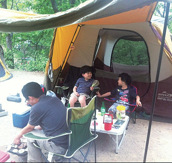숲 속에 위치한 초이 캠핑장은 조용하고 호젓했다. 텐트를 치고 의자와 테이블 세팅을 했다. 땀이 났다. 큰아기 석은 시원한 맥주 좀 가져 온나~고 지시했다. 후배인 난 맥주를 꺼내주고 불을 피웠다. 애들은 물총싸움에 정신이 없었다. 애들을 위해 물을 끓여 햇반을 데웠다. 석은 좋구나~를 연발했다. 좋으니? 이제 형이 좀 해~. 석이 짧은 손을 들었다. 후배인 난 저녁상을 차리며 되뇌었다. “애 셋 데리고 개방전하는구나~. 와잎아, 넌 노났구나~.” 문의 010-8779-5697.