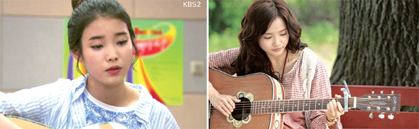 아이돌 스타를 간판으로 내세운 TV 드라마에서 때아닌 1980~90년대 히트곡 다시 부르기가 한창이다. 드라마 에서 이용의 을 열창하는 아이유(왼쪽)와 에서 유재하의 을 부르는 민세이.KBS 화면 갈무리,Mnet 화면 갈무리