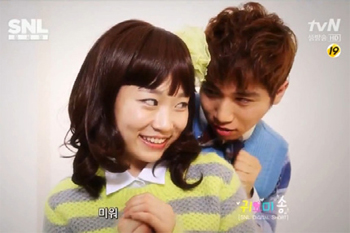 나는 개그의 서브 장르 구분에 예민하다. <이나중 탁구부>의 악취미와 <멋지다 마사루>의 부조리는 매우 다른 계통에 속해 있다. 그런데 비슷한 시기에 빅히트했다는 이유로 같은 부류로 묶여서는 곤란하다고 생각한다. 최근 뭔가 싸구려스럽고 과격한 코미디만 보면 ‘병맛’이라고 부르는 풍조도 달갑지 않다. 웃음 자체가 기존의 도덕과 관성을 깨뜨리는 데서 나오는데, 그런 식이면 세상에 병맛 아닌 코미디가 존재할 수 있는가? 병맛의 핵심은 뭘까? 웰메이드가 아닌 B급 정서로 보는 것도 일견 일리가 있다. 그런데 디테일이 중요하다. “이게 무슨 병× 같은…”이라는 욕이 튀어나오는데 키득거리며 웃음을 터뜨려야 한다. 유세윤·김슬기의 ‘기억의 습작(사진)’을 보자. 커플이 민박집에서 하룻밤을 보내게 되는데, 세윤은 순박한 척 변태짓을 일삼는 병맛의 현현으로 등장한다. 둘이 한방에 있는 것만으로도 부끄러워 양말 고무줄을 튕기던 녀석이 슬기가 이마에 입을 맞추자 뱀처럼 혀를 날름거린다. 슬기가 당황해하자 “태어나서 죄송합니다. 엄마·아빠가 절 갖게 해서 죄송합니다”라며 오버액션한다. 하지만 반성도 잠시뿐. 슬기의 얼굴을 만져보는 게 소원이라면서 귓구멍을 후비고 입에 손가락을 넣는다. 슬기가 “미쳤나봐”라며 때리니까 혁대를 건네며 엉덩이를 능숙하게 들썩인다. 이게 병맛이다. ‘순박한 첫사랑’이라는 관념을 산산조각 낸다. 이명석 대중문화비평가