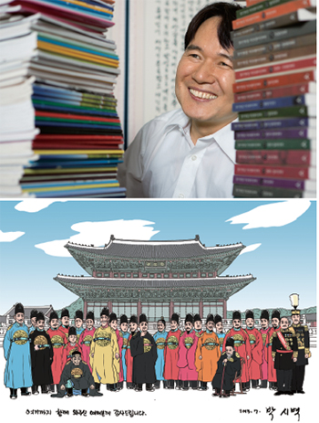 10년간의 대장정을 마친 박시백 화백과 조선 왕들이 나와서 인사하는 20권 마지막 장면.휴머니스트 제공