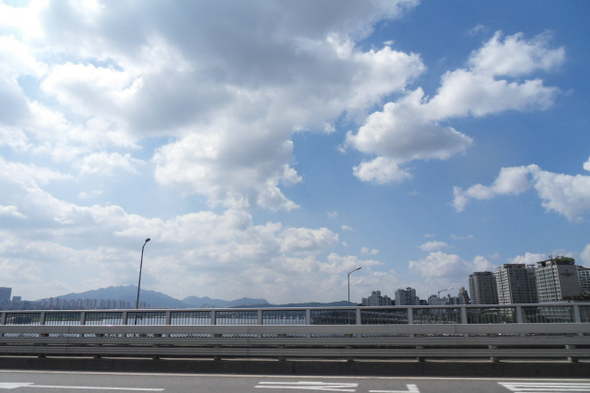 서울 시내버스를 타고 도시를 여행했다. 세종문화회관 앞에서 출발한 402번 버스를 타고 한남대교를 건너는 중이다.