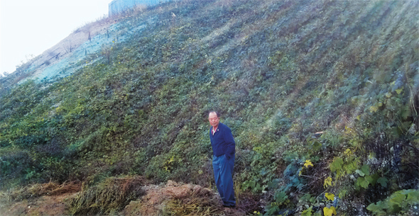 충남 청양군 강정리의 10m가 넘는 듯한 건설폐기물 언덕. ‘건설폐기물 중간처리업체’는 건설폐기물을 잘게 부순 뒤 산더미처럼 쌓아놓았다.하승수 제공