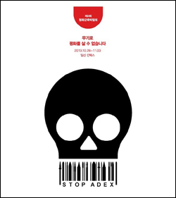 ‘무기로 평화를 살 수는 없습니다’를 주제로 평화군축박람회가 10월28일~11월3일 경기도 일산 킨텍스 전시장 주변 등에서 열린다. 킨텍스에서 열리는 ‘서울국제 항공우주 및 방위산업전시회 2013(ADEX)’에 대한 평화단체들의 응답이다. 올해로 네 번째인 평화군축박람회는 군비경쟁과 군사주의를 비판하고 진정한 평화란 무엇인지 생각해볼 것을 제안한다. 10월28일 서울 강남 JW메리어트호텔 근처에서 ADEX 환영 리셉션 대응 행동을 시작으로 29일 무기 도입 사업에 대한 평화운동가와 군사전문가의 토크쇼, 11월2~3일 ADEX 퍼블릭데이 대응 전시회 및 직접행동이 이어진다. 홈페이지(withoutwar.org/?p=8263) 참조.