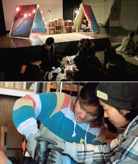 11월20일, 스프링캠프의 둘쨋날이 시작됐다. 초겨울 한파가 몰아친 이날, 서울 월드컵공원 주차장 한켠에서 목공팀이 시(詩) 상자를 만들고 있었다. ‘문화로 놀이짱’의 작업장 ‘공공 공방’에서 못을 박고 나무를 써는 소리가 들렸다. 문화로 놀이짱은 버려진 서랍 등을 수거해 새 물건을 만드는 사회적 기업이다. 아이들은 오전에 시를 읽고, 오후에 시집을 꽂을 서랍을 만들었다. 못질을 하는 엽기에게 “무슨 시를 읽었느냐” 물었다. “가을, 당신 생각을 켜놓은 채 잠이 들었습니다.” 쑥스러운 표정으로 엽기가 시를 읊었다. 함민복 시인의 ‘가을’이란 시다. “어떻게 찾았냐” 물었더니 “포털에서 사랑시를 치면 먼저 나오는 시 중의 하나”라고 답한다. 쑥스러워하는 엽기에게 “목공 작업이 재미있냐”고 물으니 엄지를 척 든다.