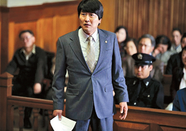 <변호인>의 주인공도 바로 그런 캐릭터다. 맘 졸이며 고생한 끝에 안락하고 만족스런 삶을 살게 된 사람이, 그것도 중년의 가장이, “법이 이러면 안 되는 거잖아요” 한마디로 빛줄기 같은 충격과 깨달음을 얻는다. 그래서 힘들게 얻어낸 것들을 포기한 채 인생을 송두리째 바꿔버린다. 고생하셨다고 국밥집 모자에게 돈이나 좀 보태주면 충분히 좋은 사람 노릇일 텐데, 진행되던 일을 버리고 일신의 안위마저 걸며 변호에 나선다. 이 모든 것이 상식으로는 설명이 어렵다. 심지어 그것이 한 번의 영웅적 일화로 끝난 것도 아니다.
