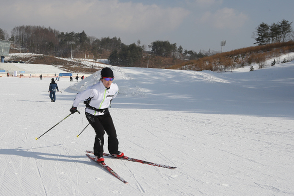 스키 크로스컨트리 국가대표팀 이채원 선수가 31일 오전 강원 평창 알펜시아 크로스컨트리 경기장에서 오전 훈련을 하고 있다. 평창/이정아 기자 leej@hani.co.kr
