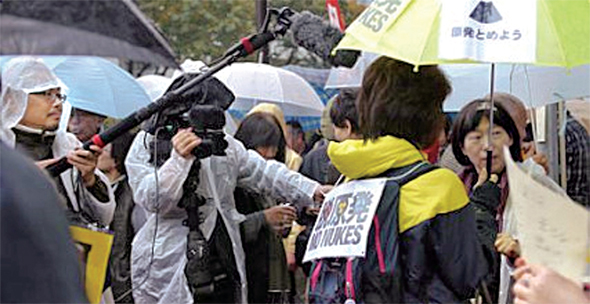 영화 〈후쿠시마의 미래〉 마지막은 체르노빌을 방문하고 온 사람들이 원전 반대 집회에 참석하는 것으로 끝난다. 일본을 탈출하기보다는 일본을 바꾸는 것을 택한 것이다. (주)리키필름 제공