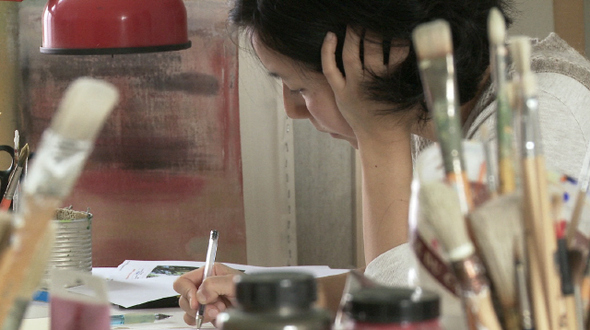 (위쪽부터)〈프랑스인 김명실〉에서 세실은 오랜 친구를 만나고, 그림을 그려 돈을 벌 고, 프랑스 엄마와 처 음 만났던 순간에 대 해 이야기를 나누며 일 상을 이어간다. 이토록 평범한 삶이지만 언제 어디서든 그는 늘 ‘다 른 사람’ 취급을 받는 다. 프랑스에서도 한국에서도 사람들은 그를 이방인이라 여긴다. 어뮤즈 제공