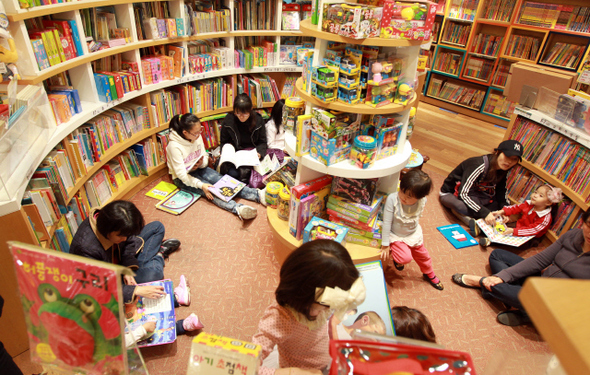 육아 멘토는 없다. 아이가 자라나는 사회에는 안전망이 없다. 지금 육아책들은 불안한 사회에서 아이를 키우는 부모의 마음을 달래는 쪽으로 가닥을 잡았다. 한 대형 서점의 육아서적 코너 모습.