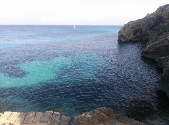 잠시, 어머니를 바위 그늘에 두고 바다로 들어갔다. 역시나 메두사의 바다였다. 전날의 사고로 트라우마도 생겼다. 잠시 들어갔다 나오니 그분은 웃으며 말했다. “3시간씩 바다에 있는 아들이 웬일이냐.” 아들은 바다를 바라보며 한참을 망설였다. 이것으로 만족할 수는 없었다. “잠깐 다른 해변에 갔다올게.” 말을 남기고 지도를 보면서 걸었다. 섬에서 가장 아름답다는 ‘부에마리노’(Bue Marino)로 향했다. 지중해의 마른 먼지가 날리는 길을 걸어가니 자전거를 타고 지나는 이들의 이상하게 보는 눈길이 스쳤다. 길가의 농가를 지나는데, 생전 처음 보는 커다란 양들도 나를 쳐다봤다. 30분을 걸어서 마법 같은 푸른빛의 바다에 이르렀다. 나중에 어머니는 “짙은 옥색”이라 하고 아들은 “에메랄드”라고 했던 그 바다였다. 부에마리노에는 깊은 그림자를 드리우는 동굴도 있었다.
