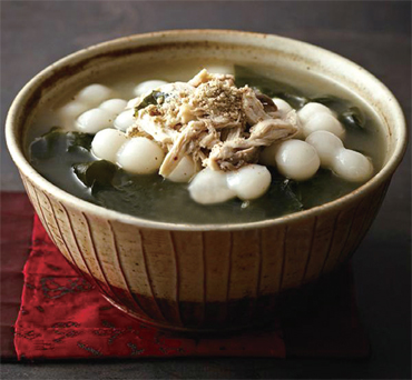 쌀가루를 대야에 담고 팔팔 끓는 물로 익반죽을 해 작은 그릇에 옮겨놓고, 그 대야에 미역을 담가 불립니다. 원 이렇게 그릇이 귀해서야 어디 해먹겠나, 그러면서 미역이 붇는 동안 밥을 해서 바가지에 퍼놓습니다. 밥했던 솥을 씻어 달궈 들기름을 두르고 ‘치지직∼’ 소리가 날 때 미역과 황태를 넣고 한참을 볶습니다. 미역이 차분해지면 조선간장을 넣고 잠시 더 볶다가 약수를 붓고 푹 끓입니다. 국물이 뽀얗게 우러나면 찧은 마늘을 넣고 모두들 둘러서서 미리 해놓은 떡 반죽을 손으로 꼭꼭 주물러 가래떡처럼 만들어 손바닥에 올려놓고 칼로 도톰하게 잘라 넣습니다. 그냥 미역국보다 엄청 더 뜨겁습니다. 쫄깃하고 투명하고 매끌매끌한 생떡 미역국을 장아찌와 함께 땀을 뻘뻘 흘리며 한 그릇씩 먹습니다. 약수를 많이 먹을 욕심에 장아찌 한 대접을 다 먹었습니다.