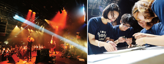 ‘러브락 아카데미’가 이어졌다. 뮤지션 1명이 일군의 팬들에게 강의를 했다. 유용한 강의일 리 없다. 갤럭시 익스프레스의 기타와 보컬을 담당하는 박종현씨는 ‘토요예술무대’, 드러머는 ‘낮술방’의 강사로 활약했다. 파블로프의 드러머 조동원씨는 ‘모태솔로방’ 강사였다. 조씨는 “당황스러운 기획이었지만 역시 남의 연애 얘기는 어디서나 흥미를 주는 것 같다. 강의실 같은 공간에서 화이트보드에 글을 써가며 이야기를 하다보니 토익학원 강사가 된 것 같은 기분이었다”며 소감을 밝혔다.