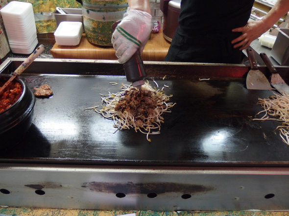 청춘들의 길거리 음식은 끼니를 때워주거나 먹는 재미가 있어야 한다. 서울 노량진에서 부타모야시덮밥을 만드는 모습(위쪽)과 인사동에서 지팡이아이스크림을 사먹는 사람들의 모습.