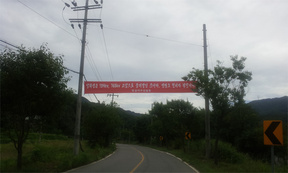 경기도 양평에 신경기변전소가 들어서는 것을 반대하는 플래카드가 곳곳에 걸려 있다. 한겨레 자료