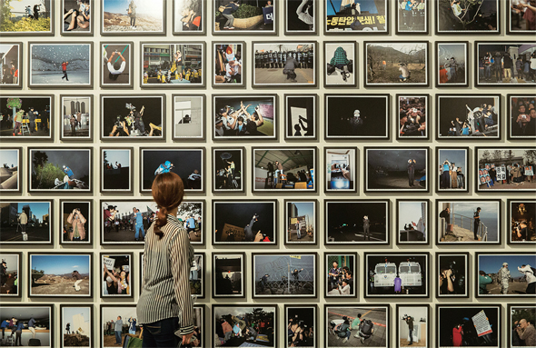 국립현대미술관의 2014 올해의 작가상 후보인 노순택 작품전 ‘무능한 풍경의 젊은 뱀’이 국립현대미술관 과천관에서 열리고 있다. 노순택은 정치·사회적으로 뜨거운 이슈의 현장을 누비며 기록해왔다. 사진가가 올해의 작가 후보에 오르기는 처음이다. 박승화 기자