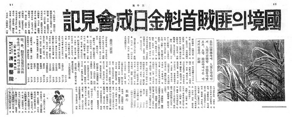 △ 사진/ 보천보전투를 대서특필한 <동아일보> 기자 양일천은 김일성 부대에 '납치'됐던 김정부라는 지주를 통해 <삼천리>에 '국경의 비적 수괴 김일성 회견기'를 실었다.