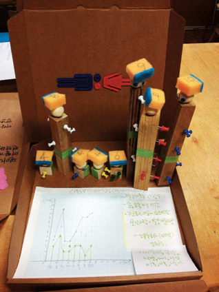 이 현상들을 보며 그냥 넘어갈 수 없지. 데이터에 대한 하나의 프로젝트를 시도해보았다. ‘데이터 공작’. 참여자가 자기가 만들어내고 있는 데이터를 스스로 추적해보고 그것을 시각화해보는 것. 단 컴퓨터 프로그램이 아니라 공예 방식으로. 우리가 일상에서 스마트폰 등을 이용해 만들어내는 데이터, 즉 위치·검색·통화기록·전자우편 등을 여러 가지 사물을 이용해 구조화하는 것, 그래서 공작(craft)이다.