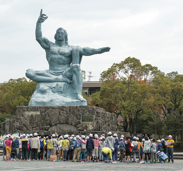 나가사키의 원자폭탄 관련 흔적 중 히로시마와 다른 것은 가톨릭 관련 유적이다. 평화공원 근처에는 일본 최대의 가톨릭교회 우라카미 천주당이 자리하고 있다. 나가사키 평화공원에서 피해자 묵념을 하고 있는 일본 학생들. 한겨레 김성광 기자