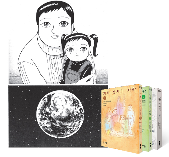 그랬던 고다 요시이에의 새 작품 두 편 <신 이야기> <기계장치의 사랑 1·2>(세미콜론 펴냄)가 나왔다. 각각 2010년, 2012년 작품. 위악은 사라지고 유머는 싱거워졌지만 이야기는 더 직접적이고 노골적으로 착해졌다. 고다 선생에게 무슨 일이 있었던 걸까.