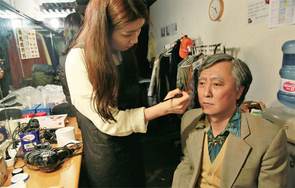배우의 얼굴은 하얀 도화지 같다. 어떤 색을 입혀도 자연스럽게 물이 든다. 연극 공연 전 분장을 하는 노진원씨.