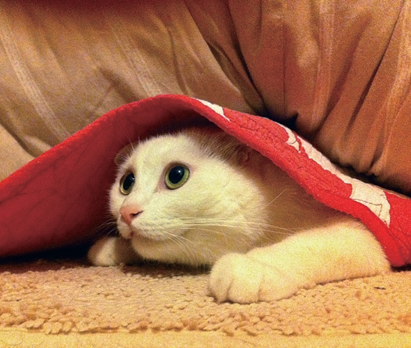 포털 사이트 검색창에서 ‘고양이 숨바꼭질’이라고 쳐보시라. 고양이가 얼마나 숨바꼭질에 열심인지 수많은 간증들이 이어진다. 읽다보면 너무 귀여워서 발을 막 동동 구를지도 모른다. “여기서 중요한 것은 잡힐 듯 말 듯, 눈은 한 번 꼭 맞추시고요.” 이렇게 몇 번 반복하다보면 뭐 우리 존재를 확인하니 어쩌니를 떠나 그냥 숨바꼭질 자체를 즐기는 고양이들이 출몰한다. 커튼이나 가구 사이, 냉장고 위에 숨었다가 물귀신처럼 발목이나 머리채를 낚아채는 것은 기본, 도둑놀이하듯 집주인이 집에 오길 기다렸다가 와락 놀래킨다. 장난감 사이에 인형인 척 숨어 있는다. 눈에 띄지 않는 구석에 움츠리고 있다가 날다람쥐처럼 몸을 활짝 펴고 달려들기도 한다. 이러다 어떤 고양이는 제풀에 놀라 게걸음으로 소스라쳐 도망가기도 한다.