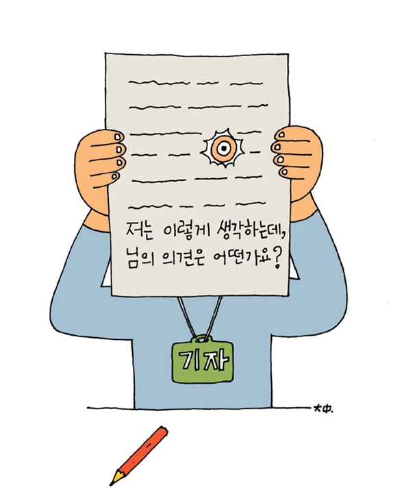 문제는 분명히 관점을 가지고 쓰이는 기사의 관점을 (기자가) 자신의 견해로 드러내지는 못한다는 데 있다. 교수가 아니라 자유기고가쯤만 되어도 종종 현상에 대한 견해를 요구하는 기자들의 전화를 받는다. 이 경우 기자들은 내 발언을 통해 자신의 관점을 표시하거나 형성하게 되니, 상황마다 그게 발언자의 생각인지 기자의 생각인지 구분이 가지 않는 경우도 왕왕 생긴다.