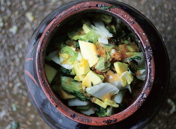 봄 늦게 먹을 고추석박김치는 집에서 멀리 뚝 떨어진 산비탈 밭가 나무 그늘에 큰 독 하나를 별도로 묻어 저장합니다. 사람들은 별나다고도 하고 바쁜데 멀리까지 갖다 묻기 귀찮지 않냐고 하지만, 평지 밭에 묻는 것보다 농사지을 때 갈구치지도 않고 나무 그늘이 있어 덜 시어, 수고한 만큼 시원하고 맛있는 김치를 먹을 수 있습니다.
