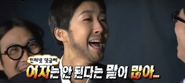 <무한도전> 식스맨 특집에서도 마찬가지였다. ‘주부답게’ 요리로 어필해볼 것을 제안하던 유재석의 말에 라면·집밥·부추전으로 계속 메뉴를 바꾸다가 결국 “밀가루 생내”가 가시지 않은 감자전으로 웃음을 자아내는 장면은 정교하게 계산된 콩트처럼 보였을 정도다. ‘여자라서 안 된다’는 반응 때문에 헐렁한 남성 양복과 수염 분장을 선보였던 장면은 더 노골적이다. 그녀는 이제까지 남성 중심적 예능계에서 살아남기 위해 과도한 여성성 아니면 무성성을 택해야 했던 여성 예능인들의 고충을 분장만으로 환기시키면서 동시에 남장이 아니라 굳이 “자웅동체 콘셉트”임을 강조하며 자신만의 개성을 고수했다.