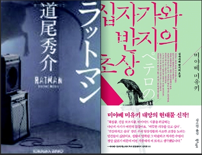이벤트 참가자들이 교정을 본 미치오 슈스케의 <랫맨>과 미야베 미유키의 <십자가와 반지의 초상>. <랫맨>의 표지는 6월12일 현재 아직 나오지 않았다. 북스피어 제공