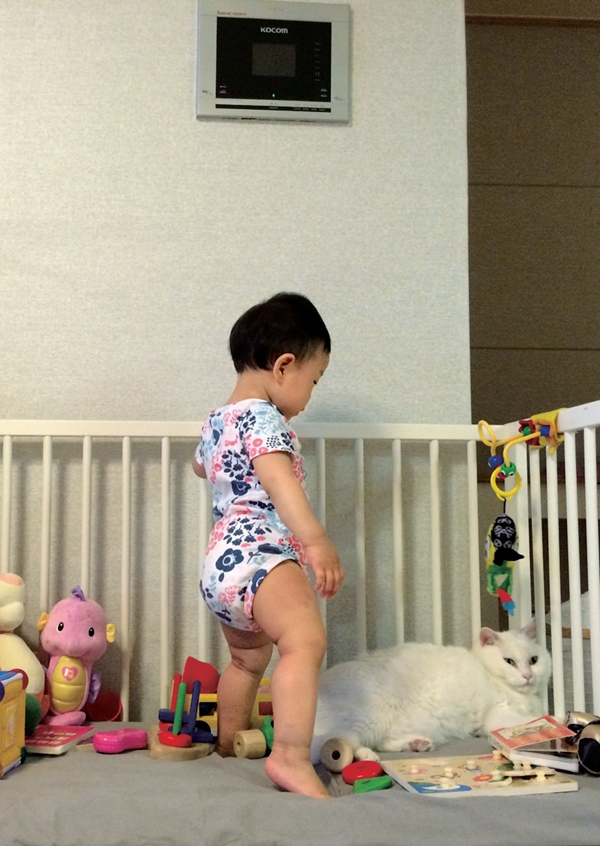 일어서 걷기 시작한 아기는 한층 업그레이드됐다. 집주인도 바빠졌다. 엎드려서는 손에 닿지 않던 울타리 문고리를 만지작거리기 시작했다. 현관과 거실 사이에 둘러친 울타리 밖에는 제리 형님과 내 화장실, 집주인들의 화장실, 신발이 널려 있는 현관까지 아기의 저지레 욕망을 자극하는 것들 천지다. 신세계가 펼쳐진 그 공간을 그냥 두고 볼 리가 없다. 집주인이 방심한 틈을 타 아기는 결국 문을 열고 탈출을 시도했다. 내가 화장실에 들어가는 것을 쫓아와서 지붕을 팡팡 두드리고 제리 형님의 화장실에 손을 대려던 순간 집주인에게 소환당했다. 화장실도 맘 졸이며 써야 하는 이 불행한 시국이여.