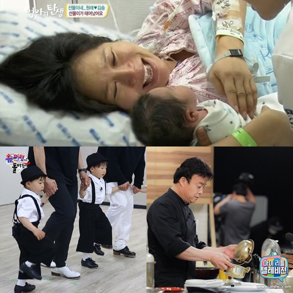 '엄마의 탄생'(KBS)은 출산, '슈퍼맨이 돌아왔다'(KBS)는 육아, '마이 리틀 텔레비전'(MBC)은 요리를 다룬다(위부터 반시계 방향으로). 한국 예능 프로그램들은 그 소재가 점점 원초적 본능에 가까워지고 있다. KBS 제공, KBS 제공, MBC 제공