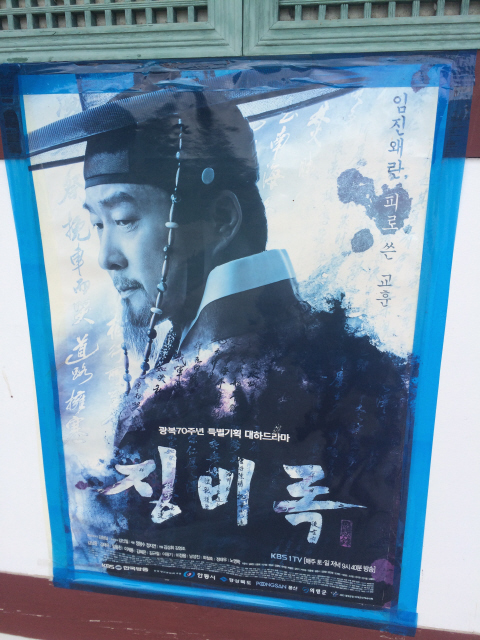 마침 폭염주의보가 내린 핫하게 뜨거운 날, 덕후는 안동 하회마을에 입성했다. 한 마리 외로운 덕후를 환영하기라도 하듯 하회마을 입구 쪽 전시관 벽에 붙어 있는 <징비록> 포스터(사진)를 발견했다. 포스터 속 갓끈을 늘어뜨리고 우아하게 뒤돌아보는 김상중을 보며 무릎 꿇고 오열할 뻔했다. 자, 침착하자. 덕질 로드는 이제 시작일 뿐이다!