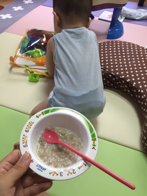 아빠가 만든 이유식에 등 돌린 채 장남감에 더 열중인 아들 세온이. 아빠가 만든 이유식을 먹을 날도 오겠지? 하어영