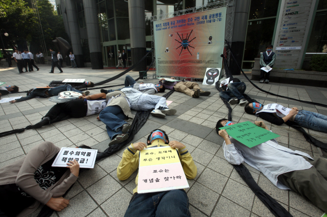 2008년 인간면역결핍바이러스(HIV) 감염인 가브리엘의 치료에 절실한 ‘푸제온’을 국내에 출시하라고 요구하는 집회가 열렸다. 육우당과 가브리엘은 정욜씨를 청소년과 감염인 인권운동으로 이끌었다. 한겨레 윤운식 기자