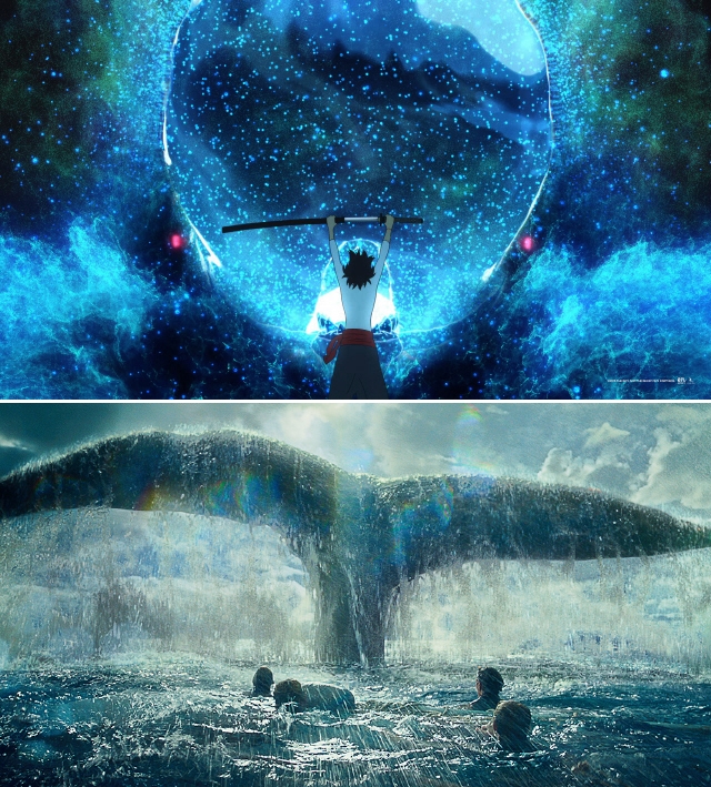 극장가에 두 마리의 흰고래(백경)가 출몰했다. 호소다 마모루 감독의 애니메이션 <괴물의 아이>(11월25일 개봉)와 론 하워드 감독의 해양 시대극 <하트 오브 더 씨>(In the Heart of the Sea·12월3일 개봉). 두 영화는 허먼 멜빌의 소설 <모비딕>과 연관이 있다. 전자에서 고래는 판타지로, 후자에선 실제로 등장한다.