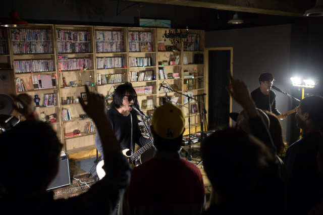 11월22일 대전에서 열린 갤럭시 익스프레스의 공연을 찾았다. 공연이 열린 곳은 대흥동의 문화 놀이터라 불리는 북카페 이데였다. 전문 공연장이 아니라 각 지역의 문화공간에서 공연을 하는 것도 이번 투어의 특징이었다. 매번 가는 도시, 매번 가는 공연장보다는 각 지역의 문화를 살리면서 밴드도 재미있게 놀 수 있는 곳을 원했기 때문이다. 그래서 전문 공연장이 아닌 북카페(대전), 오래된 음악 바(원주), 박물관(경주) 같은 곳에서도 공연이 열릴 수 있었다. 각 지역의 문화를 위해 오랜 시간 공을 들여온 토박이들이 있었고, 이들의 홍보 덕분에 갤럭시 익스프레스가 누군지 모른 채 공연장을 찾아온 이들도 있었다.