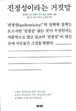 1972년생 젊은 철학자의 전복적인 사유가 종횡무진 담긴 책. 진정성이란 말은 애매하고 모호하다. 무엇이 진정성 있는 것인가? 차라리 진정성 없는 것을 떠올리기가 더 쉽다. 선거를 앞두고 유권자들은 진정성 있는 정치인을 찾는다. 그러나 유권자들이 그럴수록 역설적으로 정치인은 이미지 덧칠에 매달린다. 저자는 ‘진정성 찾기’를 허구로 보고 사정없이 깐다.