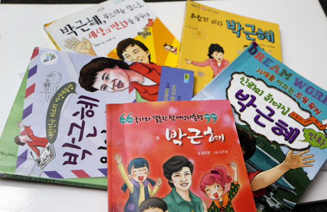 2월25일이면 박근혜 대통령 취임 만 3년이 됩니다. ‘박근혜’가 제목에 붙은 동화책은 네 권입니다. 만화책도 한 권 있습니다. 모두 지난 대선 직전인 2012년 9월30일부터 취임 직후인 2013년 3월4일 사이에 출간됐습니다. 대통령에 도전하는 박근혜 후보의 삶과 이력을 초등학생 독자에게 전하는 책들입니다.