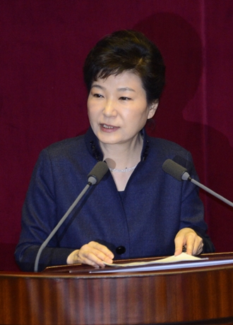 박근혜 대통령이 개성공단 폐쇄 직후인 지난 2월16일 국회를 찾아 특별 연설을 하고 있다. 사진공동취재단