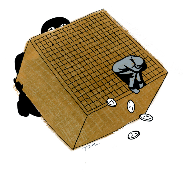 이 글을 쓰는 오늘(2016년 3월9일)은 먼 미래에 기념할 만한 날로 기억될지 모른다. ‘인류 대표’로 나선 이세돌은 구글 딥마인드의 인공지능 ‘알파고’와의 첫 바둑 대국에서 졌다. 그런가 하면 오늘치 신문에는 유럽과 미국 등 선진국뿐 아니라 우리나라 2030세대의 소득증가율이 사상 처음 감소했다는 뉴스가 등장했다. 자본주의 역사상 최초로 일하는 젊은 층의 소득 증가가 은퇴 고령층에 비해 뒤처졌다는, 즉 이 시대의 성장은 끝났다는 상징적 지표가 등장한 가운데, 복잡한 게임을 수행하는 인공지능의 “우아함과 아름다움”이 전세계에 공표되던 날.