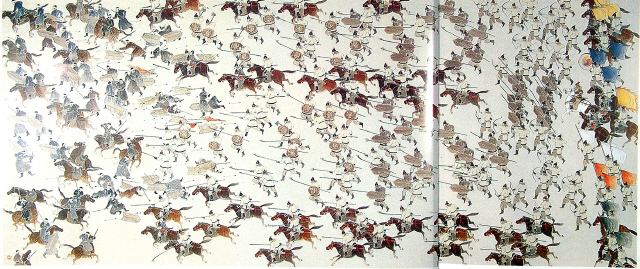 국왕과 총사령관, 고려민들이 하나로 힘을 모아 나라를 지킨 전쟁이 귀주대첩이다. 김식이 <고려사>에 묘사된 거란군 섬멸 장면을 토대로 그린 ‘귀주대첩 기록화’. 국립중앙박물관 제공