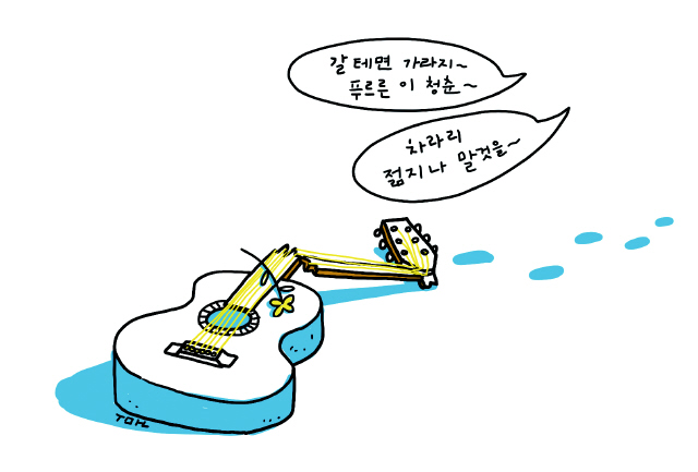 얼마 전 가수 김창완이 TV에 나와 최근 <응답하라 1988>에 삽입돼 다시 인기를 끈 산울림의 노래 <청춘>에 대해 이야기하는 걸 듣다가, 김인엽 만화의 주인공이 지금 이 노래를 부른다면 뭐라고 부를지 궁금해졌다.