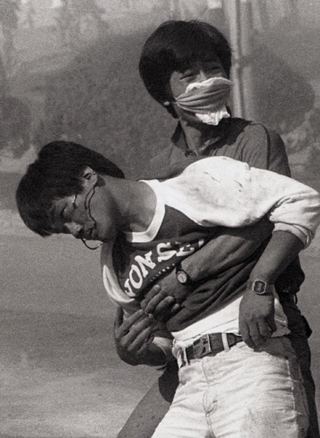 6월항쟁 당시 이한열을 부축하는 이종창씨. 정태원