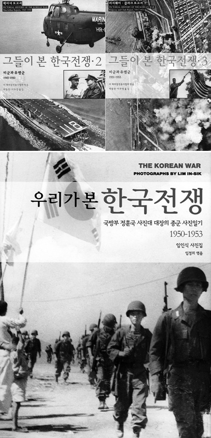 2005년 눈빛출판사에서 세 권으로 펴낸 <그들이 본 한국전쟁>(위쪽). 아래쪽은 2008년 같은 출판사에서 나온 <우리가 본 한국전쟁>.