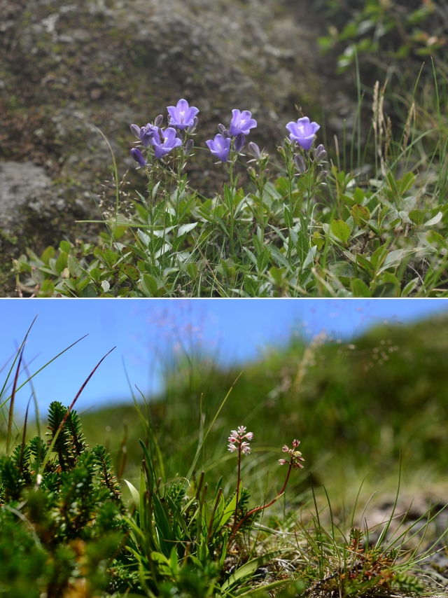 한라산은 전국에서 1년 중 가장 먼저 꽃이 핀다. 마지막 꽃이 남는 곳도 제주다. 식물의 아름다움을 만끽할 꽃들이 여기서 자란다. 섬잔대(위쪽)와 한라꽃장포.