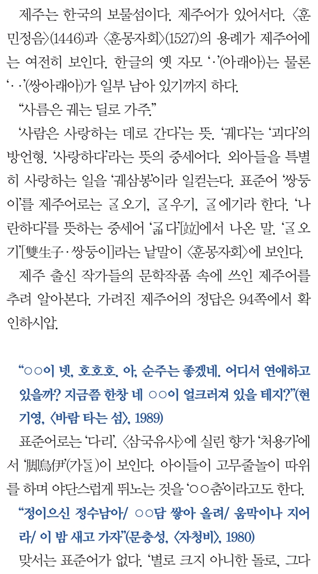 요즘 제주에서 가장 바쁜 원희룡 제주도지사를 <한겨레21>이 만났다. 그에게 난개발, 주택·토지 가격 폭등, 교통량 폭증, 취업난 등 현안을 묻고 대책을 들었다. 뒤이은 기사에선 ‘낯선 아름다움’의 제주어와 제주의 아픈 역사, 독특한 문화를 다룬 책들을 소개한다.
