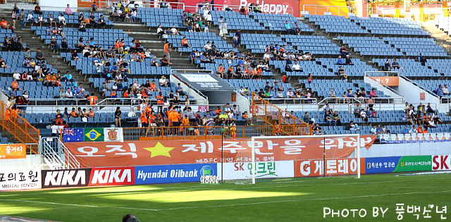 선수들은 제주 특유의 환경 때문에 어려움을 토로한다. 주장 오반석 선수는 “육지보다 훨씬 높은 습도가 선수들을 괴롭힌다. 원정 때 비행기가 지연돼 몸도 풀지 못하고 경기에 나선 적도 있다”고 말했다. 상대팀들은 한 시즌에 제주행 비행기를 한 번 타지만, 이들은 제주발 비행기를 19번이나 타야 한다. 수비수 정운 선수처럼 비행기 공포증이 있는 경우도 있다. 그렇다고 제주 삶이 늘 팍팍한 것은 아니다. 2010년에는 연고지를 옮긴 지 5년 만에 리그 준우승을 차지했다. 이후 K리그 클래식(프로축구 1부 리그) 중상위권 성적을 유지하고 있다. 선수들 입장에선 제주에서만 누릴 수 있는 특별한 혜택도 있다. 오반석 선수는 “제주에서만 ‘진짜’를 맛볼 수 있는 말고기나 흑우로 체력을 보충하는 선수들이 있다”고 귀띔했다. 말고기·흑우로 체력 보충 구단이 더 큰 의미를 부여하는 것은 제주 주민들과의 관계다. 제주 FC는 2013년 프로축구협회한테서 ‘팬프렌들리’ 상을 받았다. 선수들이 지역 초·중·고 학생들에게 축구를 가르치고, 한 해 100여 차례 도민 행사에 찾아가는 노력을 인정받은 것으로 구단은 판단한다. 구단 쪽은 “제주도 자생 구단이 아니기에 거리감이 단기간에 해소되진 않을 것이다. 그러나 도민이 제주 FC를 ‘우리 선수’ ‘우리 팀’으로 받아들이기까지 더 많이 노력할 것”이라고 말했다. 제주 FC 팬클럽 ‘풍백’의 강은방 회장은 “제주 FC가 지역의 유일한 프로구단을 표방하면서 제주로 왔을 때 정말 설레었다. 팬클럽도 ‘오직 제주만을 위해’ 구단에 응원을 아끼지 않을 것”이라고 말했다. 배지현 교육연수생 creativebjh@naver.com