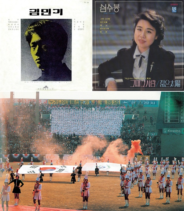 박정희 정부는 대중의 감성을 가르치고, 규율하려 했다. 당대 최고의 가수 심수봉·김민기(상단 왼쪽부터)의 노래가 포함된 대중가요 222곡을 금지 처분한 것이 대표적이다. 전두환 정부는 1982년 프로야구를 출범시켜 우민화 정책을 폈다(아래쪽). 한겨레