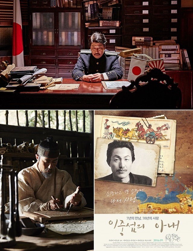 추석 극장가는 올해도 대작 역사극이 주류를 이룬다. <밀정>(상단)과 <고산자, 대동여지도>(하단 왼쪽)가 맞붙었다. <이중섭의 아내>처럼 작고 따뜻한 영화들도 관객의 발걸음을 기다린다. 각 제작사 제공
